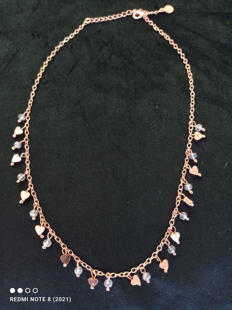 collana ramata cuori e cristalli pendenti