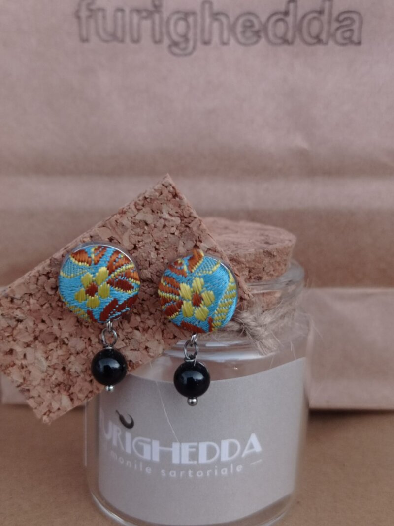 orecchini base argentata con broccato e pendente "Su Coccu"