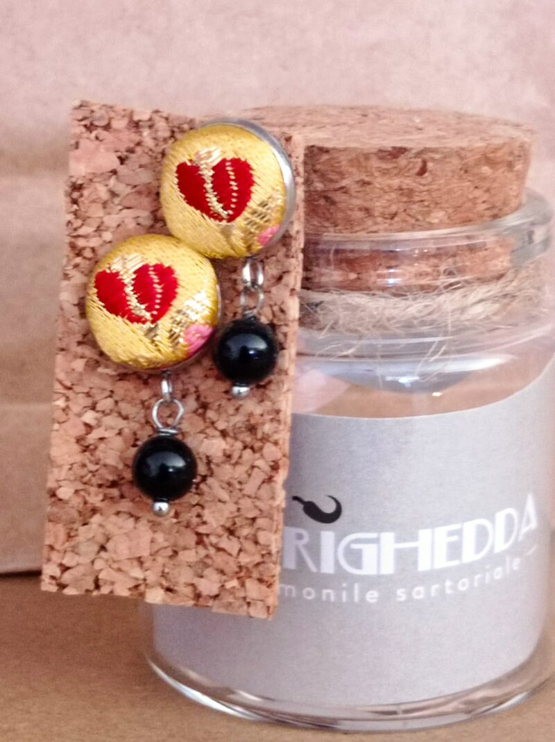 orecchino base argentata con broccato e pendente "Su Coccu"