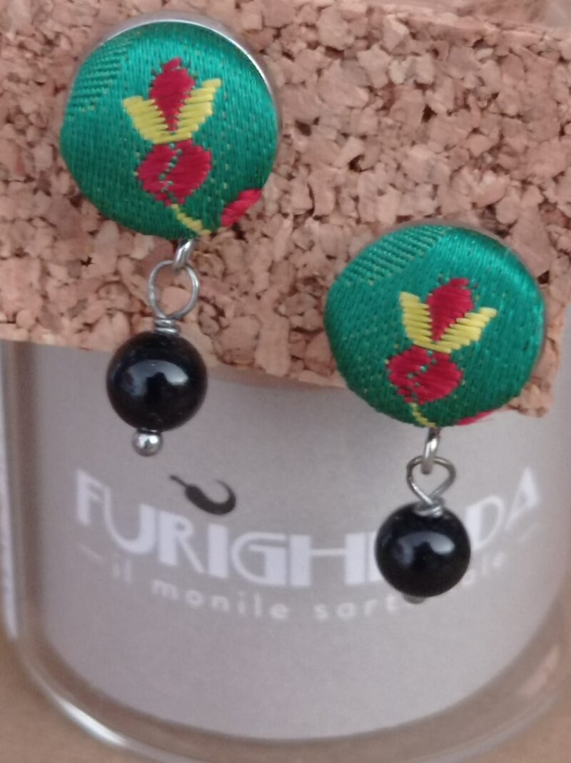orecchino base argentata con broccato e pendente "Su Coccu"