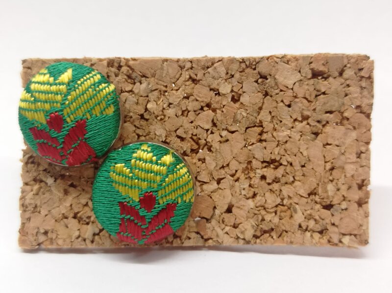 orecchino verde base dorata con broccato